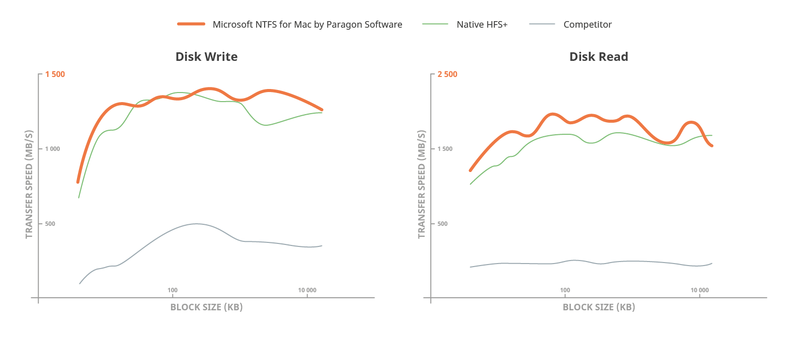 Check out the detailed benchmarks and see how Microsoft NTFS for Mac by Paragon Software outperforms the macOS native read-only NTFS Driver!