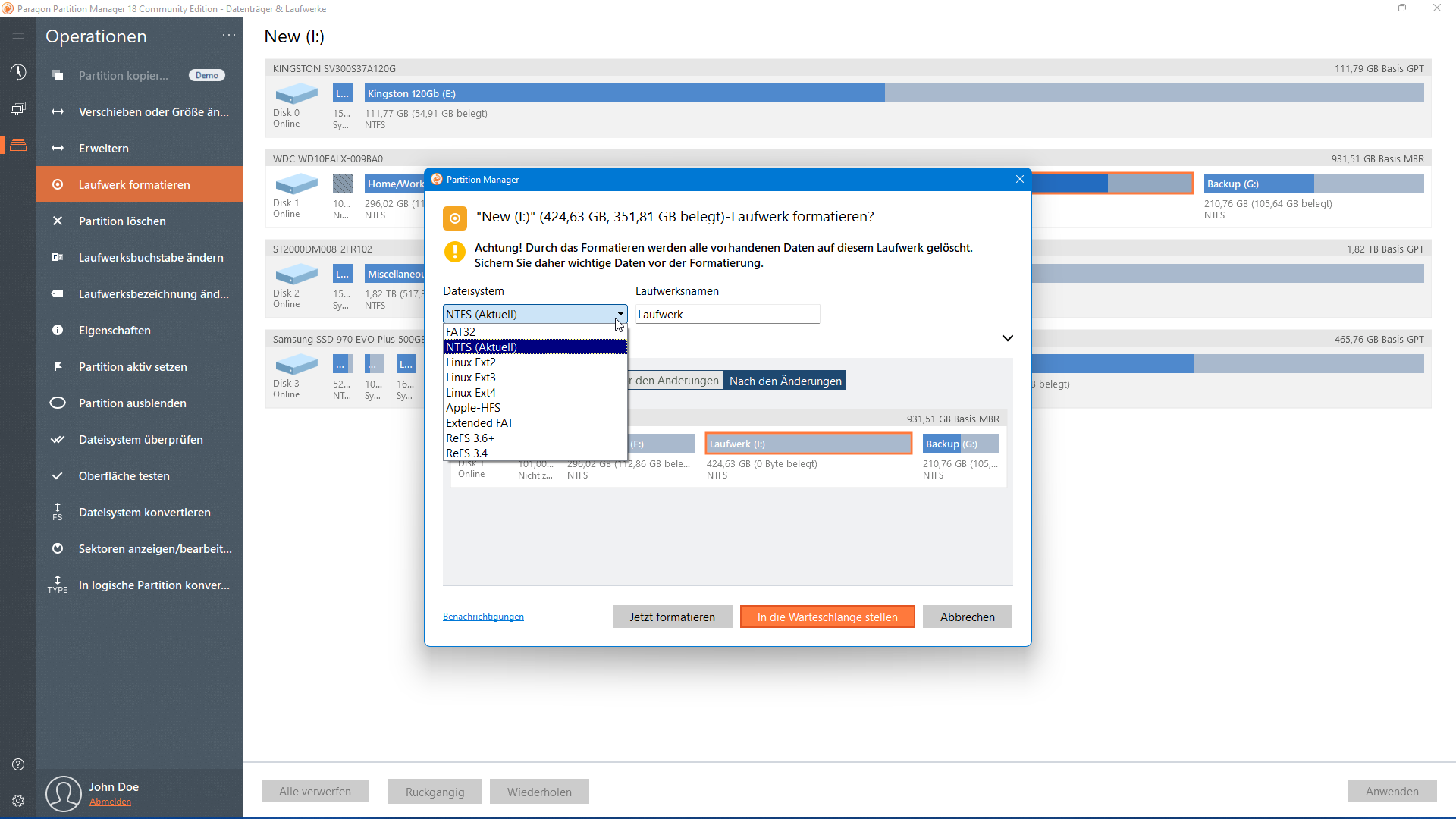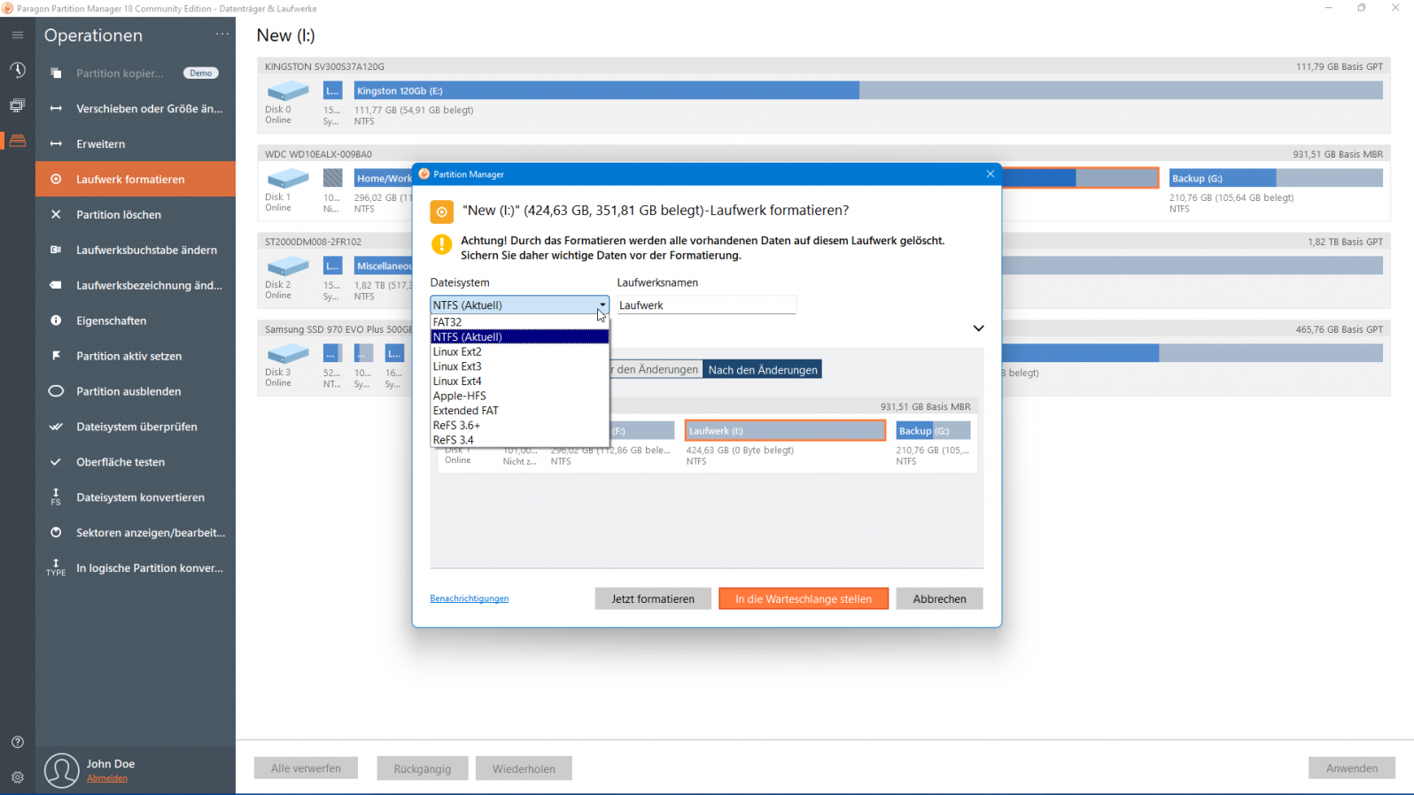 Festplatten, SSDs, USB-Sticks, SD- und andere Speicherkarten formatieren oder Partitionen löschen, um sie anderweitig nutzen zu können