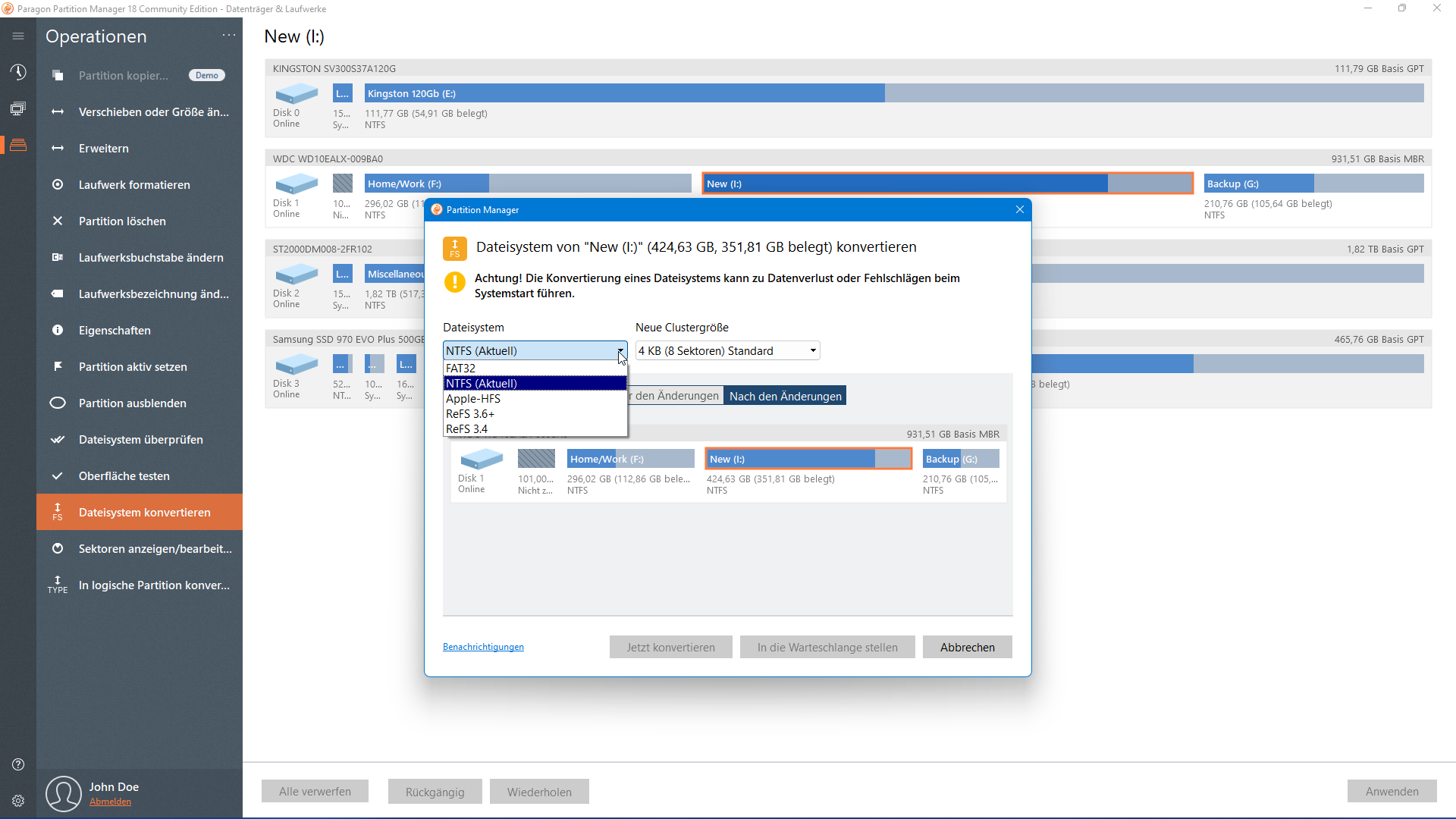 Für die kommerzielle Nutzung verwenden Sie bitte Paragon Festplatten Manager Business.