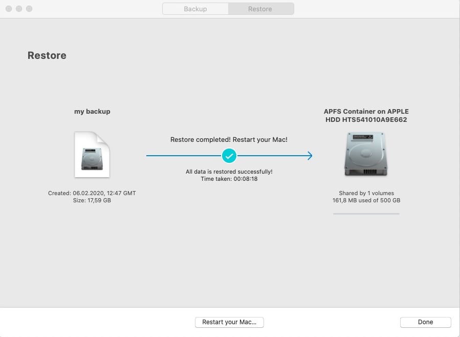 Dramatically boost your backup speed. Only 9 minutes to create a full backup of 131GB disk on Mac Mini (2018, T2 chip)