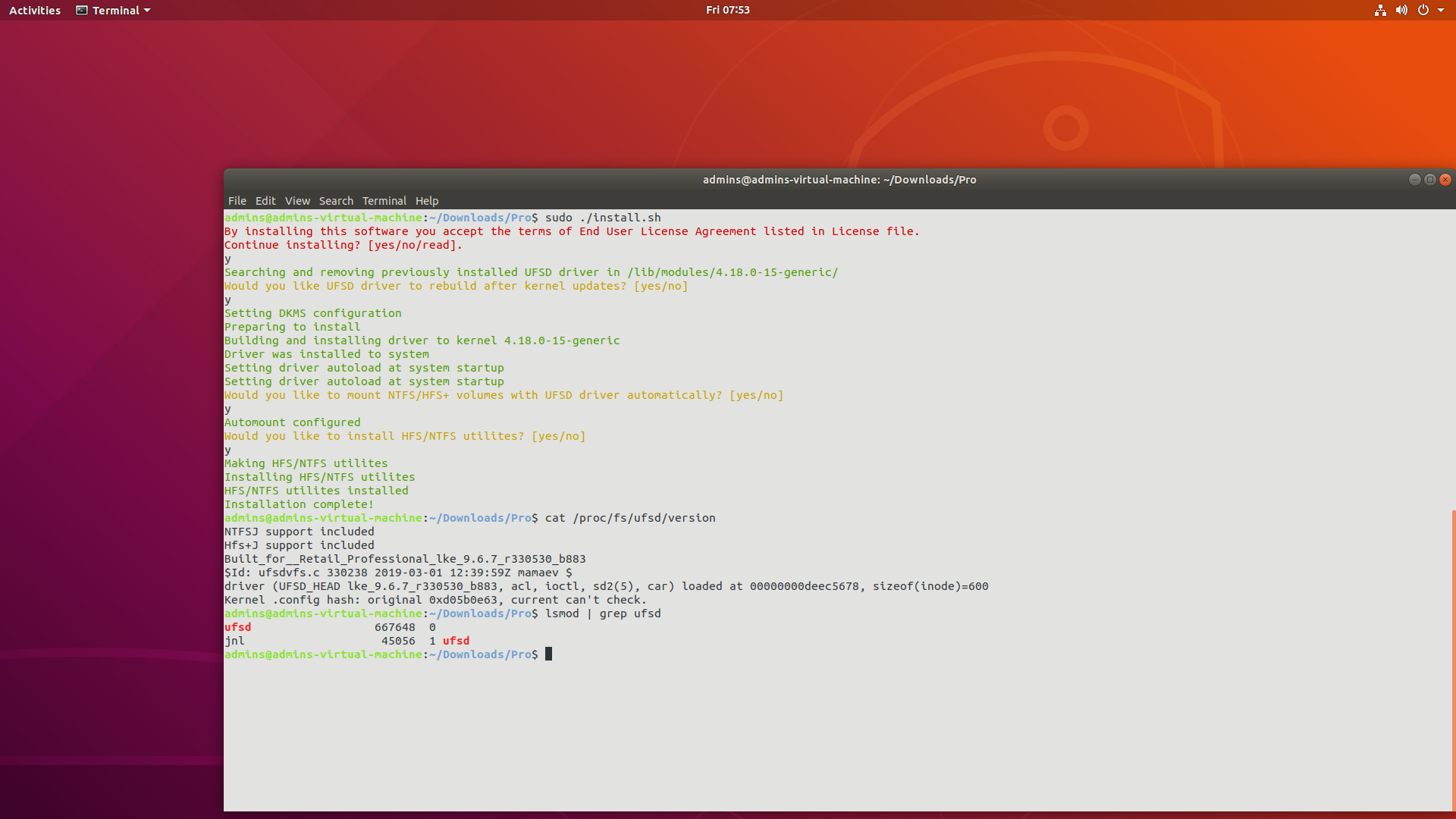 | Development Environment to install NTFS&HFS+ for Linux software | A development environment is required to compile Linux drivers and utilities. Please verify that these tools are functional. The easiest way is to choose the developer toolkit when installing Linux. What must be installed: - kernel source code (recommended) or header files (doesn’t always work) for the kernel