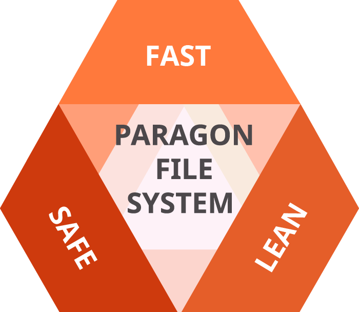 Historically, all existing file systems were created for a certain purpose, and have a lot in common. They consist of similar logical, virtual, and physical structures and modules optimized for a certain purpose and a certain type of operating system architecture. Over the last two decades, Paragon Software has implemented virtually all existing file systems under most operating systems presented in the market. This experience has given us “DNA-level” knowledge of how to build a perfect file system for our commercial customers. This expertise is how we have created the modular, configurable and adaptable Paragon File System. We designed it to precisely address the needs of each specific customer rather than try to adapt existing market file system implementations. Paragon FS gives embedded developers ultimate precision and configurability in their data storage requirements. To our customers, this means best possible performance, longer flash memory lifetime, lower power consumption, less CPU usage, shorter out-of-operation intervals and the best fault resistance.