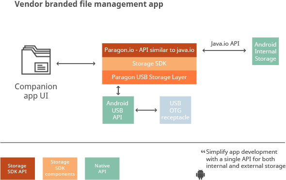 | Who is it for? | Vendors of Android USB Storage, companion app developers | Android File Manager developers and vendors |